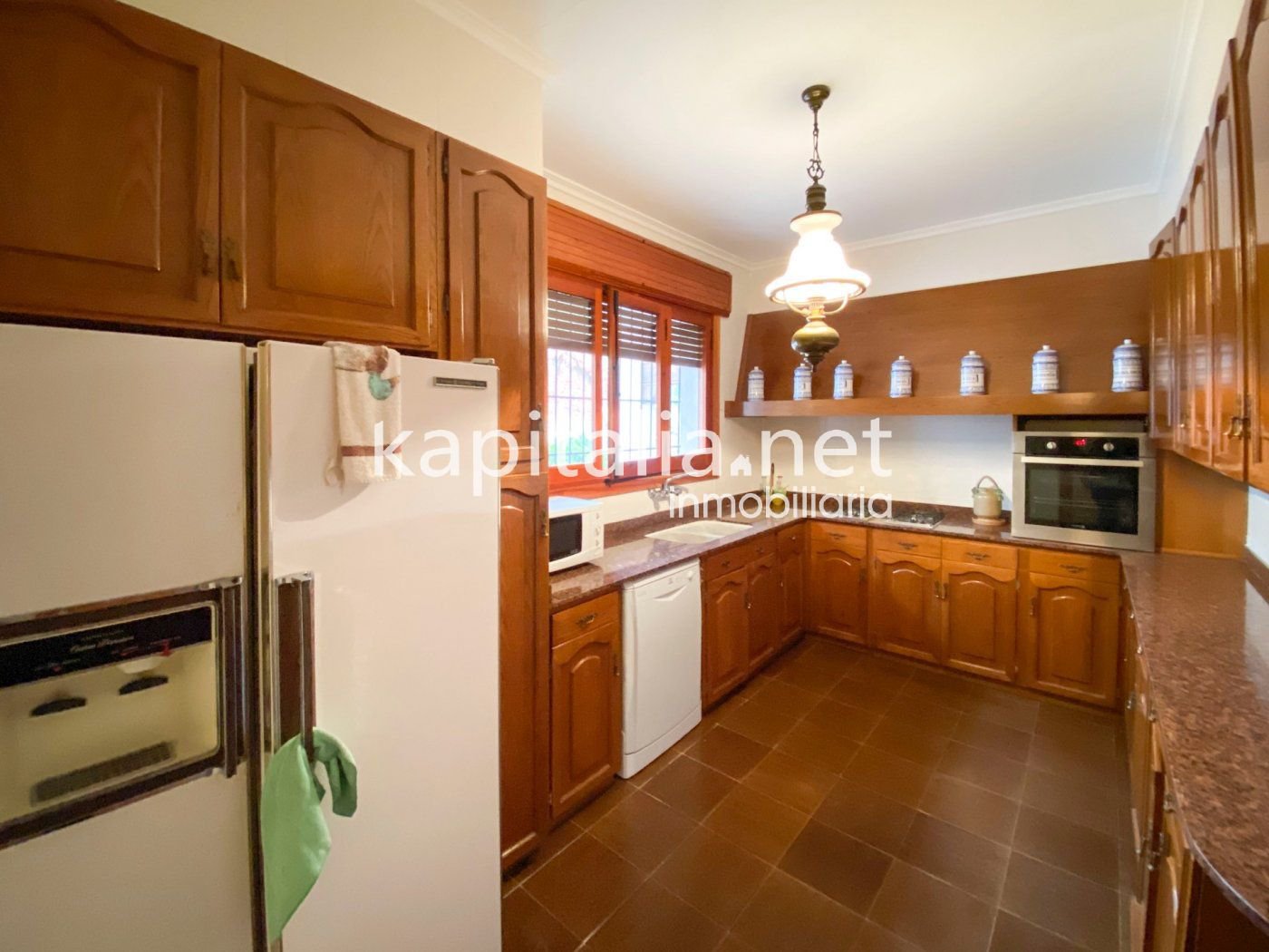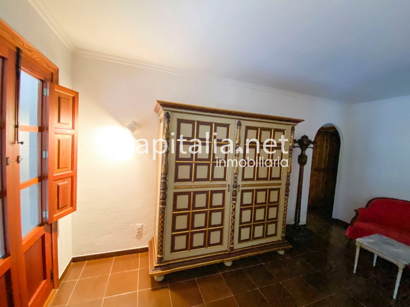 Casa señorial con gran jardín en el centro de Atzeneta d'Albaida La propiedad está distribuida en 2 plantas. En primer lugar, tenemos la entrada principal con un cuarto de aseo, un amplio salón comedor con decoración de vigas de madera, chimenea e instalación de hilo musical. Desde el salón comedor tenemos acceso a amplia pérgola y gran jardín privado con piscina. Accedemos a una habitación doble con armario empotrado y un cuarto de baño completo con bañera. Seguido una habitación doble con armario empotrado y paredes de piedra con chimenea y vistas a un inmenso jardín. Gran cocina independiente rústica con luz natural, amplia dispensa y vistas al jardín. Amplia cochera con gran capacidad y pequeña bodega. Zona de lavandería independiente y con salida al jardín. En la segunda planta encontramos un gran distribuidor con salida a balcón. Seguido de una habitación doble con cuarto de baño completo con dos senos y bañera con armario empotrado. Tres habitaciones dobles con armario empotrado. Un cuarto de baño completo con bañera. Todas las estancias tienen vistas al jardín. La casa dispone de radiadores en todas las estancias con caldera de gasoil. En el exterior encontramos un bonito y gran jardín con piscina, bonito pozo, zona de barbacoa y casa auxiliar. En la casa auxiliar encontramos un gran salón, chimenea y armarios empotrados y además una habitación extra. Zona de paseo con alumbrado y riego de goteo. Zona de cultivo con limoneros, naranjo, palmeras, pinos y cañas de bambú. Todo el jardín se encuentra vallado. Parte del jardín se encuentra en condiciones jurídicas y urbanísticas para edificar, con un coeficiente de edificabilidad alto. Pida información sin compromiso.
