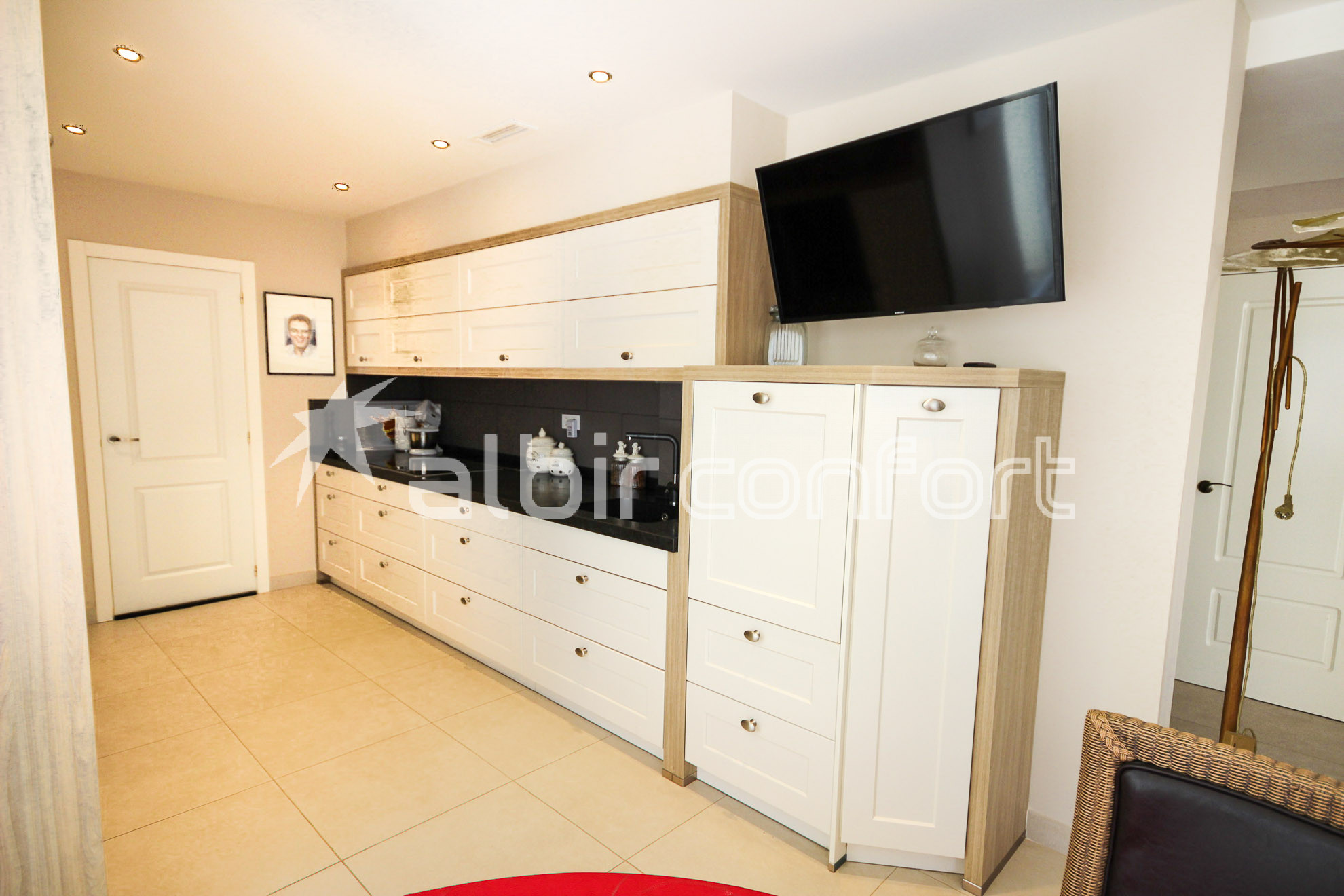 Schitterende villa te koop in Sierra Cortina, met prachtig aangelegde tuin en privé zwembad op het zuiden. Alles is volledig gerenoveerd zowel buiten als binnen met materialen van topkwaliteit. Binnen heeft u op de begane grond een ruime woonkamer met moderne vloeren en grote ramen die uitgeven op het buitenterras en het zwembad. Er is een salon met gashaard, een volledig geëquipeerde moderne keuken met berging, een ruime slaapkamer en aparte badkamer met douche. Via de open trap gaat u naar de eerste etage met drie slaapkamers en twee badkamers. De ruime hoofdslaapkamer heeft een privé terras met panoramisch zeezicht en badkamer in suite. Daarnaast zijn er nog eens twee slaapkamers met aparte badkamer. Eén van deze twee slaapkamers is omgevormd tot een dressing room. Kortom, een perfect onderhouden villa op een unieke locatie met panoramishe uitzichten, in een residentiële zone, vlakbij het hotel Asia Gardens, de thema parken Terra Natura, Terra Mítica, 2 golfbanen, enz… Er is een fitness studio vlakbij met tennisbanen en paddel. Het strand van Playa Poniente is gelegen op zo’n 3,5 kilometer. Het winkelcentrum La Marina bevindt zich op 5 minuten, en de luchthaven van Alicante op zo’n 45 minuten met de wagen.