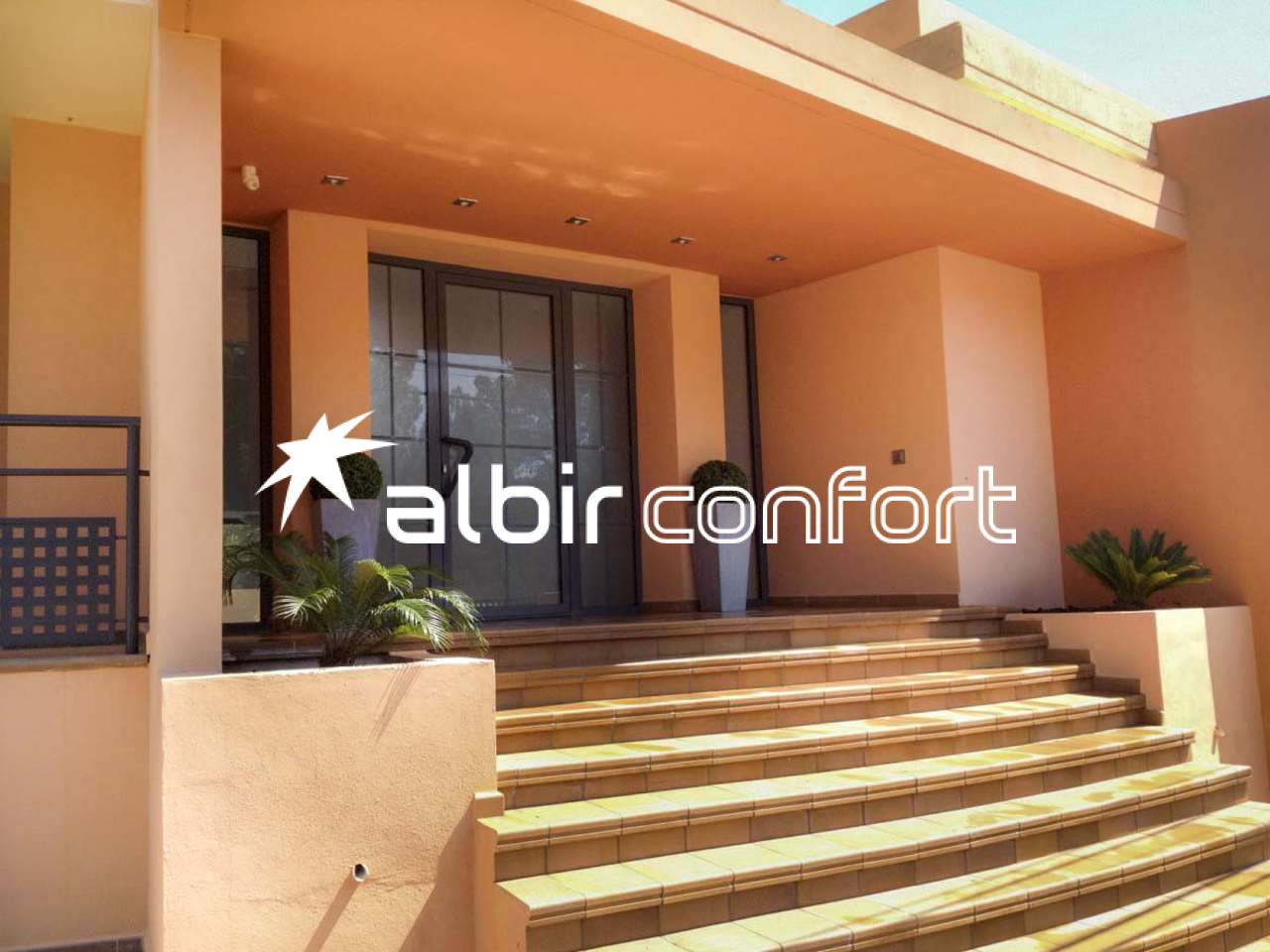 Magnificent villa with 450 m2 for sale in Alfaz del Pi. Sold partly furnished and with the kitchen equipped with appliances. Distributed on two floors, the main floor consists of a large living room, a separate kitchen, three bedrooms, three bathrooms and a guest toilet (all bedrooms are with terrace). On the semi-basement floor there is a living room, a small kitchen, two bedrooms, two bathrooms and a toilet. The ground floor can be converted into an independent guest apartment. The house has air conditioning and central heating. There is also a garage with capacity for three vehicles, parking area for several cars, private pool and a garden.